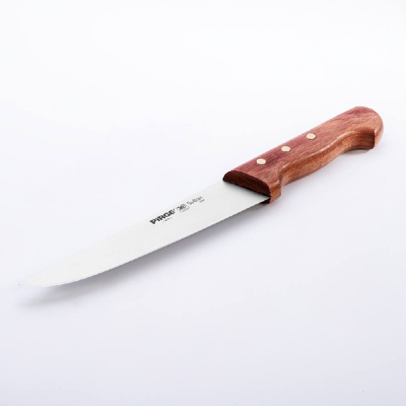 Rose Kasap Bıçağı ürünümüz kalın ve güçlü çelik yapısı, doğal gül ağacı, üç perçinle sabitlenmiş sağlam sap kısmı sayesinde işlerinizi çok kolaylaştıracaktır! Kullanımınıza uygun bir ölçü, kalınlık ve sap modeli seçtiğinizden emin olun, etleri ve sebzeleri ne kadar rahat kestiğinizi gördüğünüzde bize hak vereceksiniz.